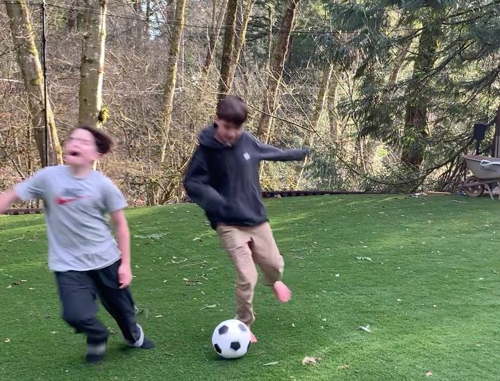Mathias @mathias_clift and Noah seem to be enjoying the new backyard turf. Goal!!!!