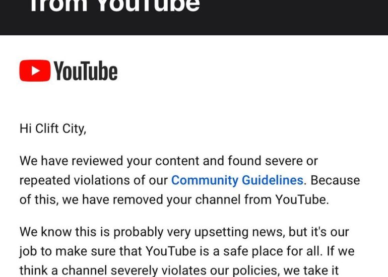 YouTube terminated my Clift City channel. This has to be a mistake. I have spent countless hours vol